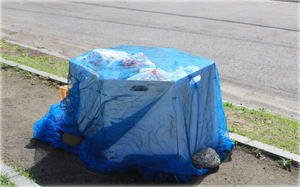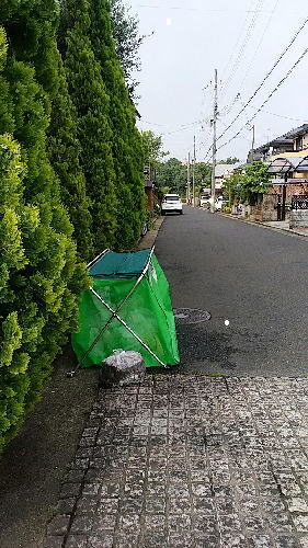 | 被害発生 弊社では、「被害が出たら即返金」をうたい文句にしており、絶対に被害は出しません。という姿勢を明快に打ち出しております。 しかし、現在、全国で5件の被害報告が出ております。 又聞きなので詳しいことはわかっていませんが、使い方の確認をして頂いた後、その後に問題は発生していないとのことです。 教えて下さった方は、返金を希望しないだけでなく、追加注文を下さッたり、同町内の隣の班に宣伝して下さったりして、隣の班から注文を頂いたりしております。 放り投げ 被害の発生には次のようなことが考えられます。 一番の理由は弊社ネットを過信し、乱暴に放り投げることによるものと考えられます。 弊社カァー・ラスネットX支柱は蚊帳状にネットを縫製したもので蚊帳のように吊して使うものです。 横方向から投げ入れますと反動でネットの裾を押しのけて外に出てしまいます。 折り癖 はっきりしている例に、ネットに折り癖が付いてしまい裾が空中に浮かんでしまった例があります。 簡易型の場合、支柱横棒にネットが吊り下げられておりますが、この横棒にネットを縛り付けておいたために、アコーディオン状の大きなしわが付いてしまい、全体が空中に浮き上がったものです。 現在は素材の変更により、以前よりもしわが付きにくくなっておりますが、出来るだけ避けて頂きたい収納の仕方と言えます。 強風 中にゴミ袋が入って、内側からから、裾を押さえつけてしまうとかなりの強度を持つのですが、いくつかのゴミ袋が中に溜まるまでは、強い風がふいたりしますと裾がめくれる恐れがあります。 通常は、作業がし易さを考えて裾は固定しておりません。裾もフックにかけるなどすれば、風でめくれることはありません。 これまでの報告では、「最初の方が風上の方にゴミ袋を置いて下さるので、裾が風でめくれるようなことはありませんでした。」という報告を受け、まず、大丈夫だろうと考えております。 傾斜地 傾斜地では、ゴミ袋が外に向かって転がり出ようとします。その結果ゴミ袋が裾を押しのけてしまい、顔を覗かせる危険があります。 傾斜地を避け、平地で使って欲しいのですが、どうしても傾斜地以外に設置箇所がないような場合、裾の付け根付近に板を張り渡すなどして、転がりを防ぐ必要があります。 (無くても、ある程度は保ちますが、ネットに負担がかかります。) ネコ ゴミ袋がネットの中に積み重なってしまえば、ネコにも強いのですが、まだゴミ袋が一つ二つの段階ではネコが中に入ろうとすれば入ることができます。 (1件だけですが、前日から出しておいたところ、子猫が入ってしまったという例があります。 1回だけでその後入られたことは無いとのことですので、猫も学習するのかなと思っております。) これは、まだ袋が一つだけという状態時に起きることで、猫に荒らされたという例はありません。 猫が入ってしまった例が、最近(平成27年末)もう一つ増えました。 竹などの廃材を積み上げたものに寄り添うような形で設置されたものです。 廃材伝いにネットの上に乗り、滑り込んだものと思われます。 荒らされたという形跡は無く、、継続はしていません。 |