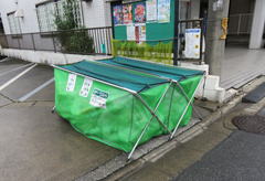 コンクリートブロックで出来たゴミ置き場がある方 どんな大きさにもピタッと収まるようにお作りします。 現在は、通常ダークグリーンの無地で作ります。 お客様と一緒にご希望に添った ぴったりのものを創り出します。 どのような条件にも挑戦いたします。 |