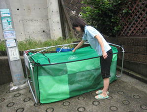 | 11.ふたを取るのは面倒ですか。 カラス対策はポリバケツから小型カァー・ラスネットへ 新宿区 アパート経営・管理人 Y・K様東京都新宿区 アパート経営・管理人 Y・K様よりアンケートにお答え頂きました。Y・K様は住人五戸に対して、蚊帳状立体型小一つづつを用意されています。(平成20年11月) |