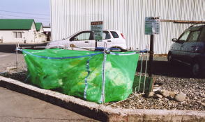 | 8.新たに二箇所追加しました。 さいたま市 M・U様 当町内は、氷川神社(武蔵一之宮)の参道に面した町内です。 参道の樹木、神社の森、神社裏には大宮公園があり、木々の多い風紀地区になっておりカラスをはじめ野鳥の多い地区で、以前からカラスの被害に悩まされてきました。 二年程前から、貴社のカー・ラスネットを順次導入してきました。 結果カラスの害も少なくなって来ましたが、逆に未導入の集積場所がカラス被害にあっています。 今回、新たに二か所に導入、使用者の声は扱い易いと評価は大変高く評判は上々です。 生ゴミだけを入れるようにし、他はネットの外にを徹底指導中です。 ゴミを入れ易く、折り畳式にになっているので管理・片付けがやり易いと(当番 制)喜んでおります。 導入、二か所の写真を添えましたのでご覧ください |