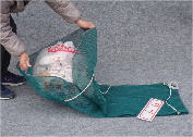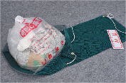 最近分かったことなのですが、ファスナー式で実験しましたところ、普及版(普通版)のネットの状態(内容物の入り具合)によっては、カラスの食いちぎり被害が発生することが判明いたしました。(実際にはファスナー式に使用していません。)