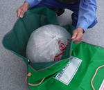最近分かったことなのですが、ファスナー式で実験しましたところ、普及版(普通版)のネットの状態(内容物の入り具合)によっては、カラスの食いちぎり被害が発生することが判明いたしました。(実際にはファスナー式に使用していません。)